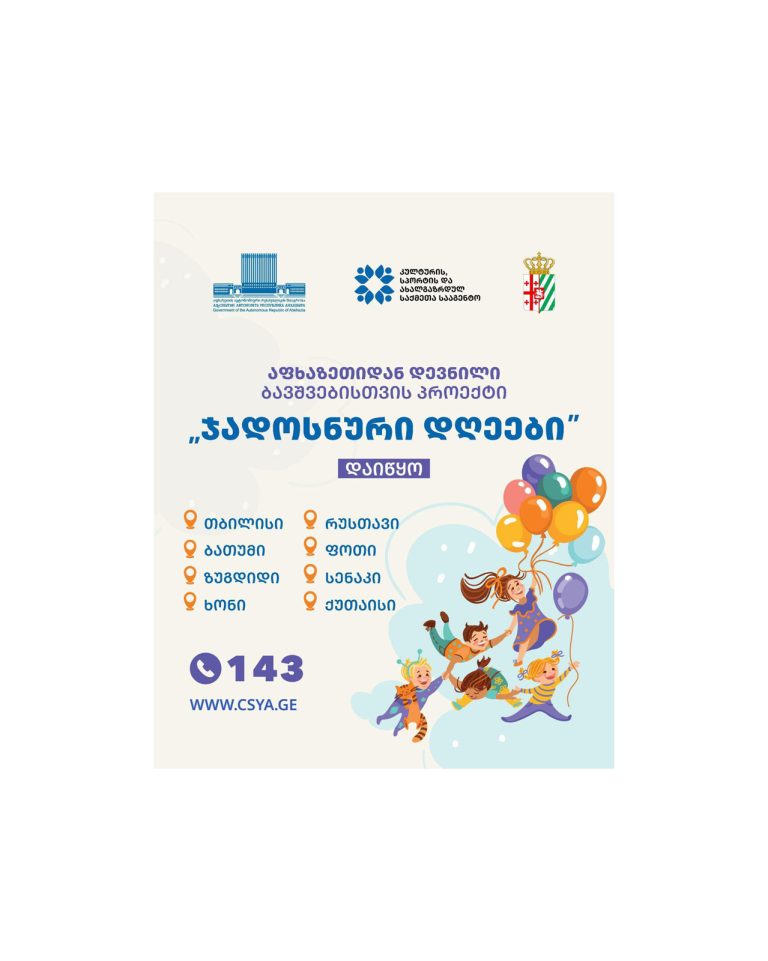 პროექტი, აფხაზეთის ავტონომიური რესპუბლიკის მთავრობის ინიციატივით, აფხაზეთის კულტურის, სპორტისა და ახალგაზრდულ საქმეთა სააგენტოს ორგანიზებითა და აფხაზეთის ავტონომიური რესპუბლიკის იძულებით გადაადგილებულ პირთა – დევნილთა სამინისტროს მხარდაჭერით, ქვეყნის მასშტაბით, 8 ქალაქში ხორციელდება და 7 დეკემბრის ჩათვლით გაგრძელდება.