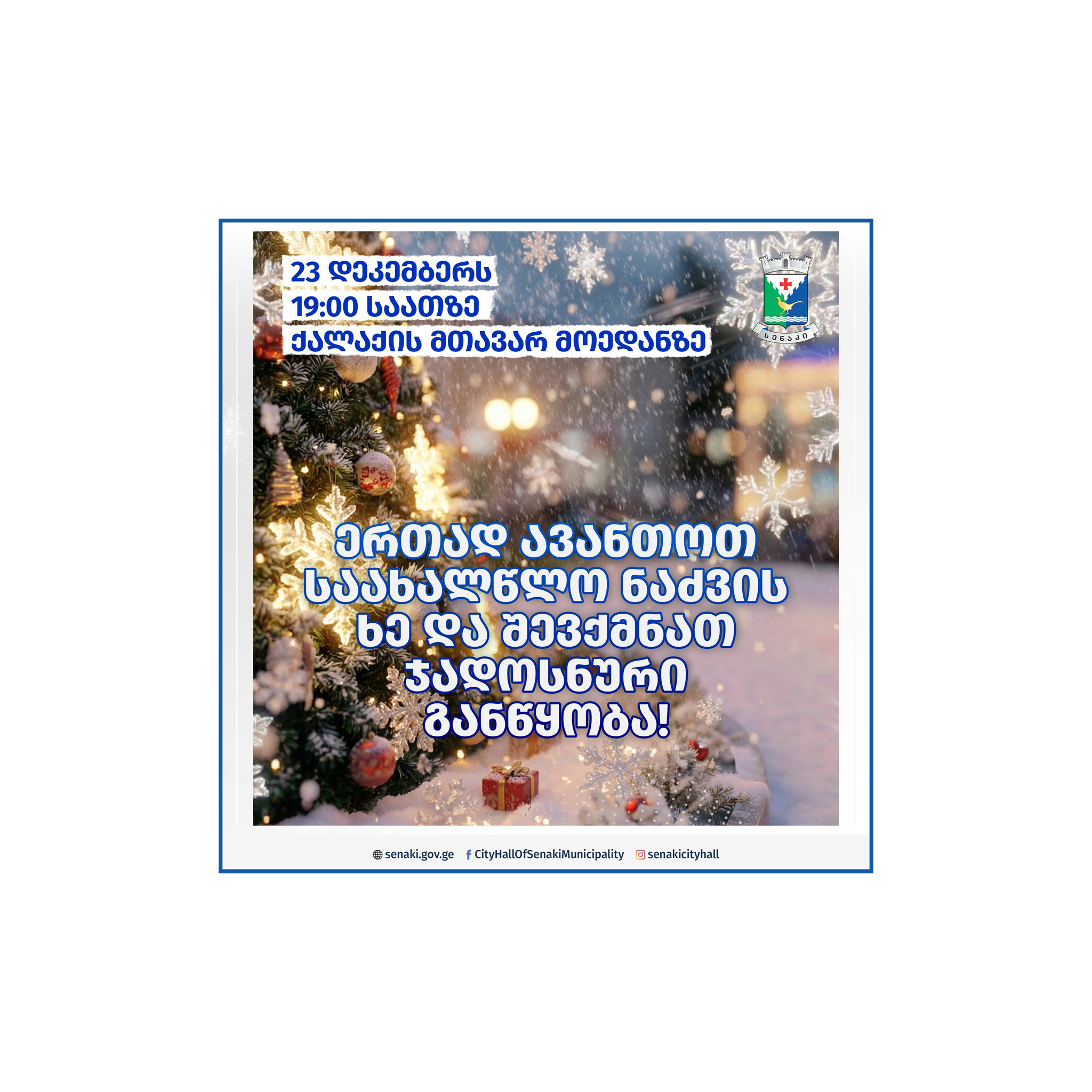 23 დეკემბერს, 19:00 საათზე, სენაკის მუნიციპალიტეტში, ქალაქის მთავარ მოედანზე, სენაკის მუნიციპალიტეტის მერიის ორგანიზებით, საახალწლო კონცერტი გაიმართება და მთავარი ნაძვის ხე საზეიმოდ აინთება!